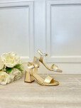 Sandalia taco medio con plataforma .Cuero platino.