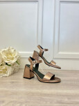 Sandalia taco medio con plataforma .Cuero peltre.