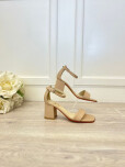 Sandalia taco bajo con pulsera con talon. Cuero nude.