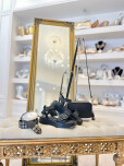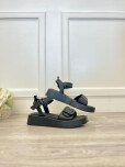 Base con plataforma , toda en cuero flowter negro . Con detalle de hebilla forrada en cuero.
