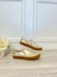 Zapatilla pancha con detalle de yute. Cuero platino.