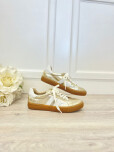 Zapatilla cuero platino con detalles de cuero blanco.